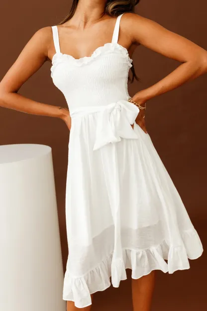 Honey Shirred Frill Midi Dress White