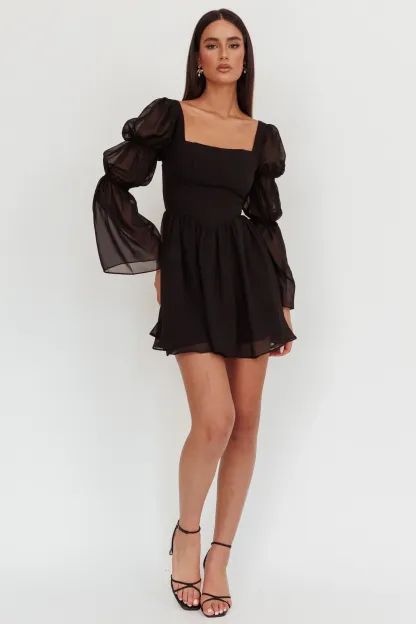 You'll be flooded with compliments in our stunning Miya mini dress. It features long, sheer sleeves and a flattering square neckline. It's perfect for a romantic date night or special birthday dinner, teamed with kitten heels and a tote to complete the look.