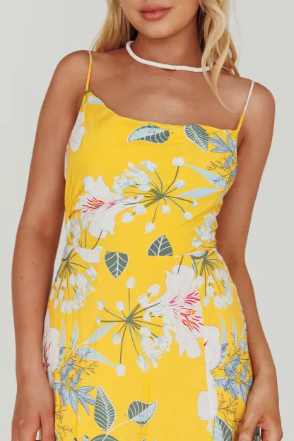 - Mustard lily print dress