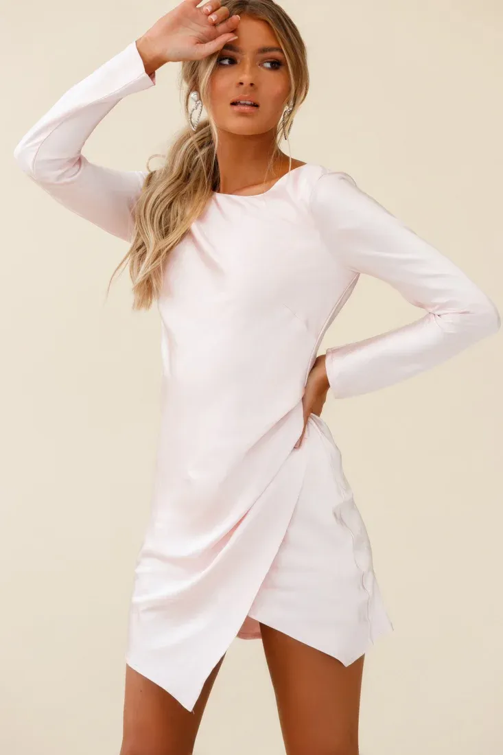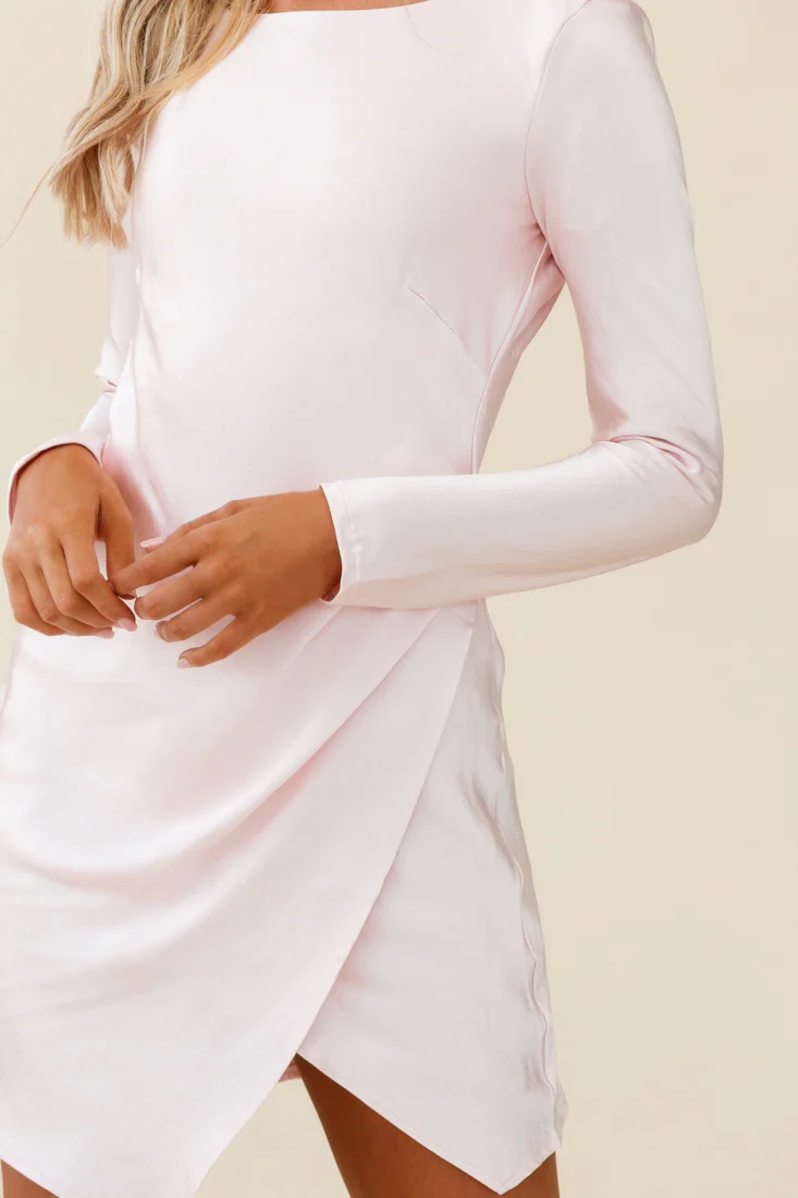 - Baby pink satin dress.