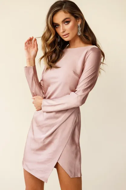They'll hate to see you go, but they'll love to watch you leave in our Thank Me Later dress. Partially lined it features a flattering boat neckline, long sleeves, asymmetrical hemline, pleat detail at the waist and sexy, open back. Wear it on a girls' night out, sipping cocktails and flirting with Mr. Tall, Dark & Handsome. Team it with strappy heels to complete the look.