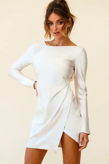 They'll hate to see you go, but they'll love to watch you leave in our Thank Me Later dress. Partially lined it features a flattering boat neckline, long sleeves, asymmetrical hemline, pleat detail at the waist and sexy, open back. Wear it on a girls' night out, sipping cocktails and flirting with Mr. Tall, Dark & Handsome. Team it with strappy heels to complete the look.